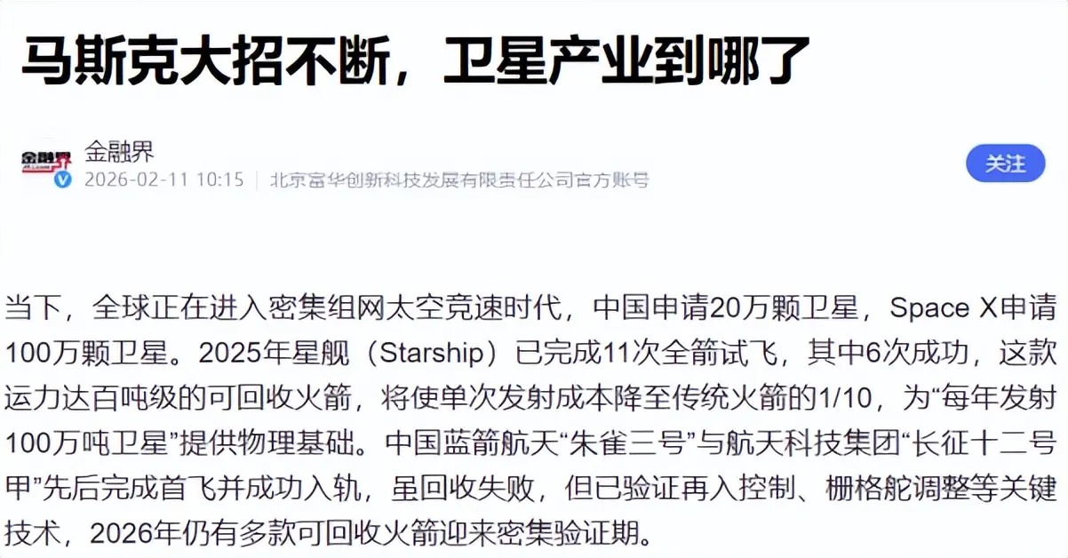 当你把成本压下去,卫星互联网、遥感、通信、导航增强、深空任务,都会被推到更可持续的节奏。