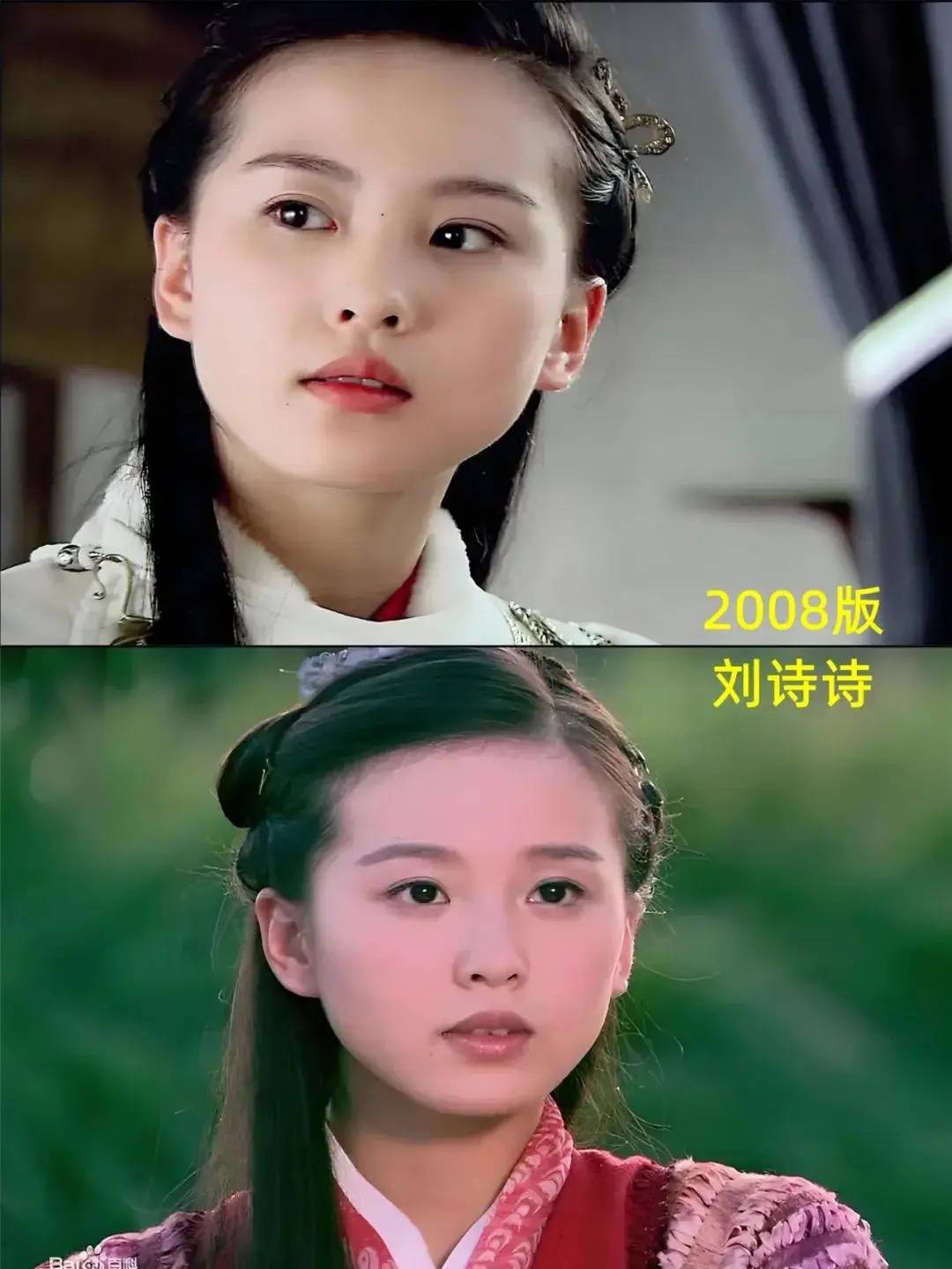 2008年大陆版《射雕》中,穆念慈由85后小花刘诗诗扮演。彼时刘诗诗还有些婴儿肥,她饰演的穆念慈中规中矩,不过五官端正,颜值堪称历版之最!