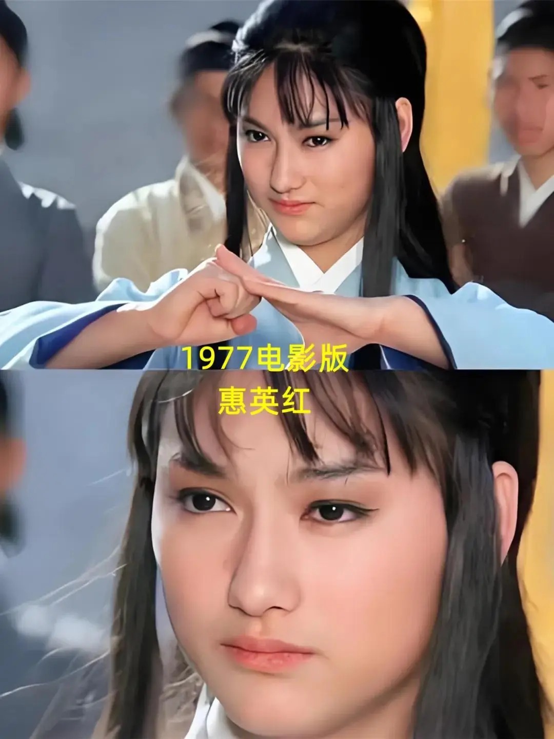 最早的一版穆念慈出自1977年香港拍摄的电影版《射雕》,由邵氏武打女星惠英红饰演。彼时的红姐年轻靓丽,5年后她荣获香港金像奖影史上首个影后桂冠。